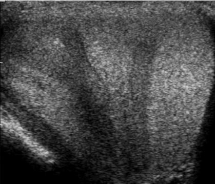 • pleomorphic adenoma - solid, homogeneous, hypoechoic