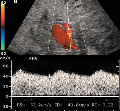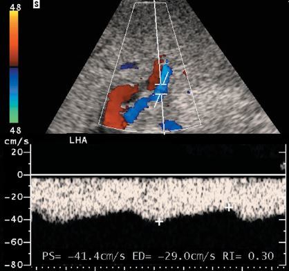Normal hepatic artery waveform a-s-v-d