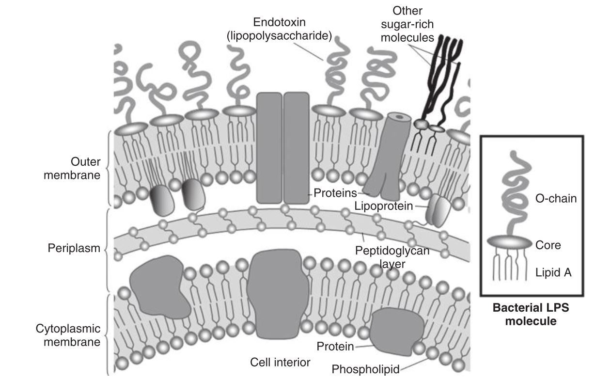 * a hydrophobic lipid A-region - is largely buried in the bacterial outer membrane