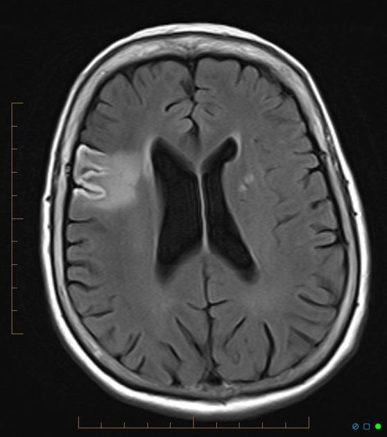 It is seen in the context of cerebral hypoxic-ischemic insults, i.e. strokes.