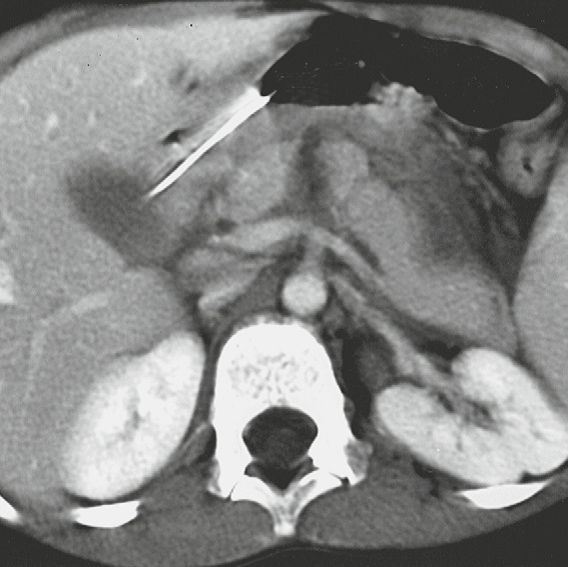 After resolution of clinical symptoms and decreased output from the catheter (less than 10 cc per day), abscessogram should be performed to evaluate for residual collection prior to removal.