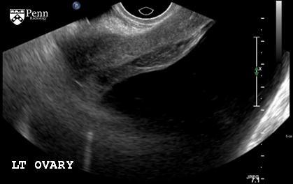 Adjacent ovary will be normal in appearance, though may be slightly distorted due to mass effect.