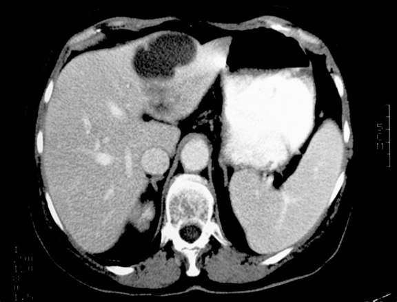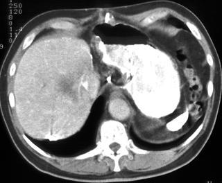 Appearance of hepatic abscess