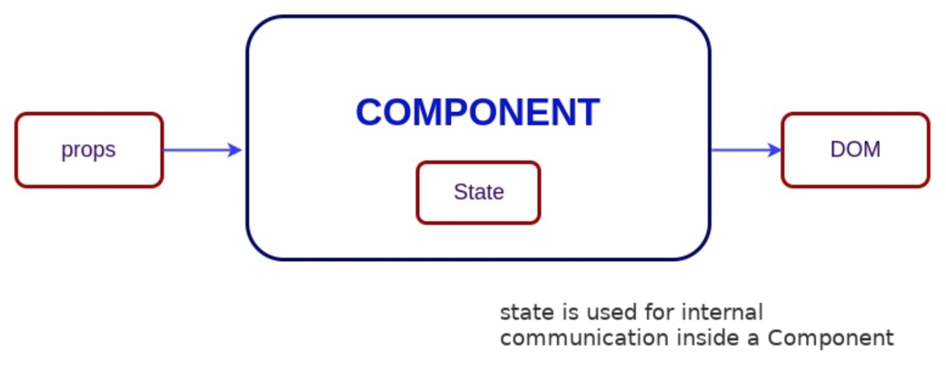 <p>Both props and state are plain JavaScript objects. While both of them hold information that influences the output of render, they are different in their functionality with respect to component. Props get passed to the component similar to function parameters whereas state is managed within the component similar to variables declared within a function.</p>