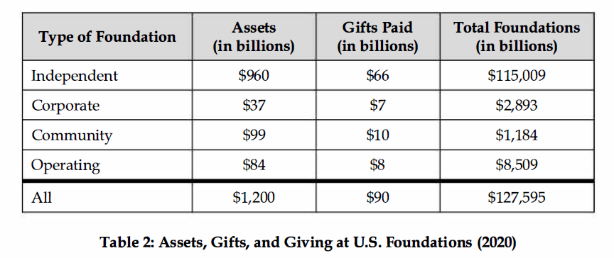 Asset size of U.S. foundations ($___trillion at the end of 2022; most held by independent, individual, and family foundations) exceeds that of university endowments.