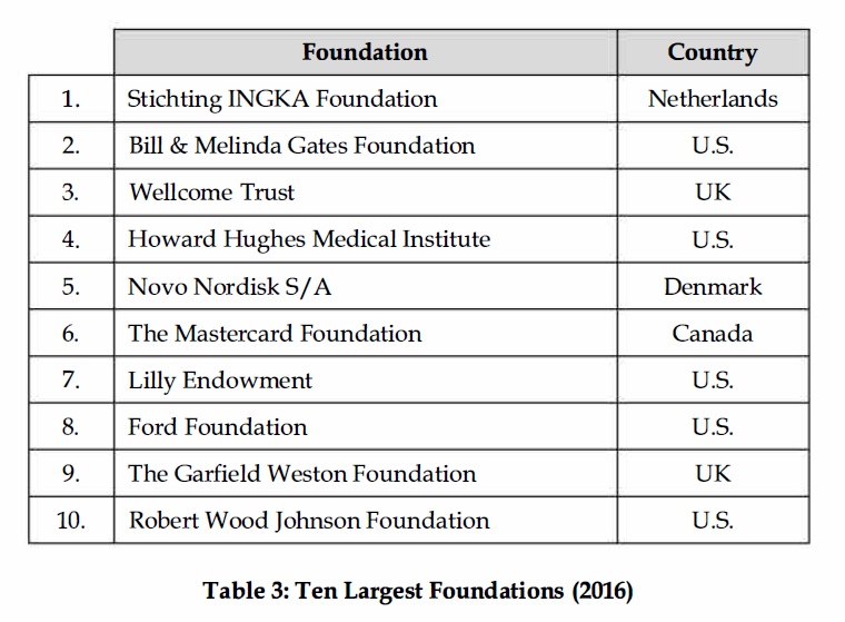 10 largest (by asset size) foundations in the world (2016)