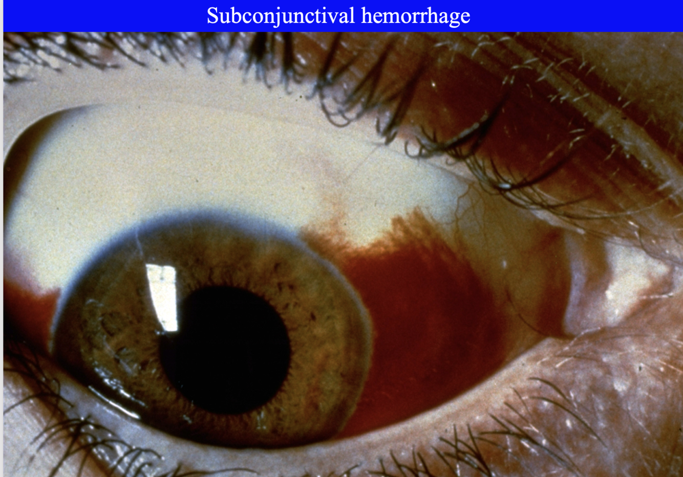 Corneal edema (corneal disruptions) that are obvious by the loss of a sharp corneal reflex to a more dulled & diffuse one.