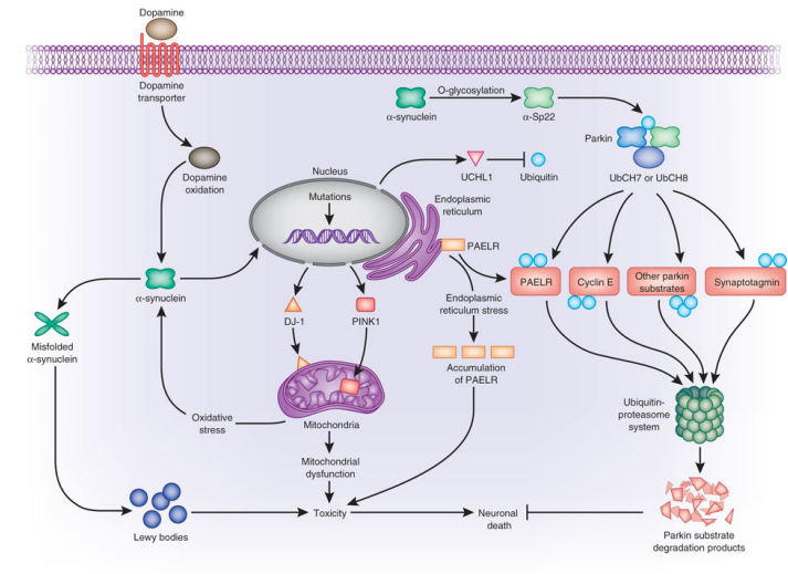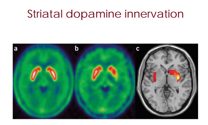 When you start expressing motor symptoms, about 80% of the dopaminergic neurons in the substantia nigra are already dead