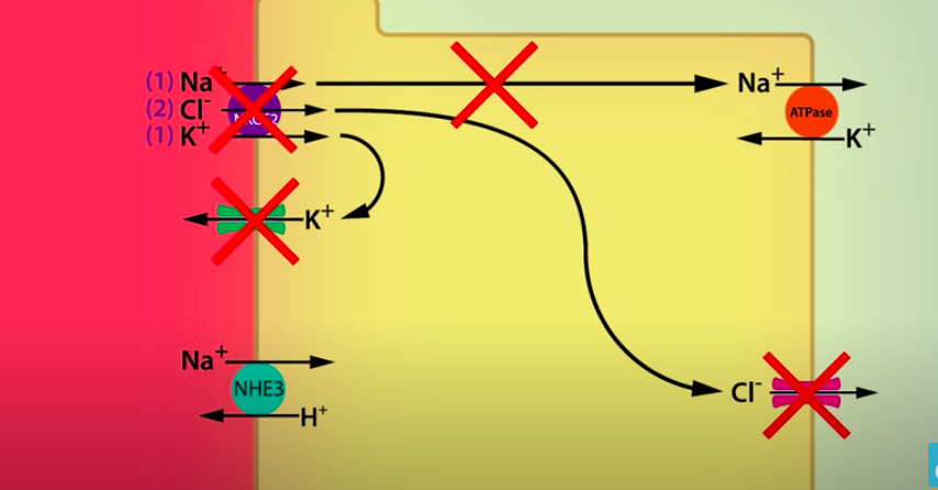 what would happen if you blocked NKCC2, Cl- or K+ channels in ascending loop of Henle??