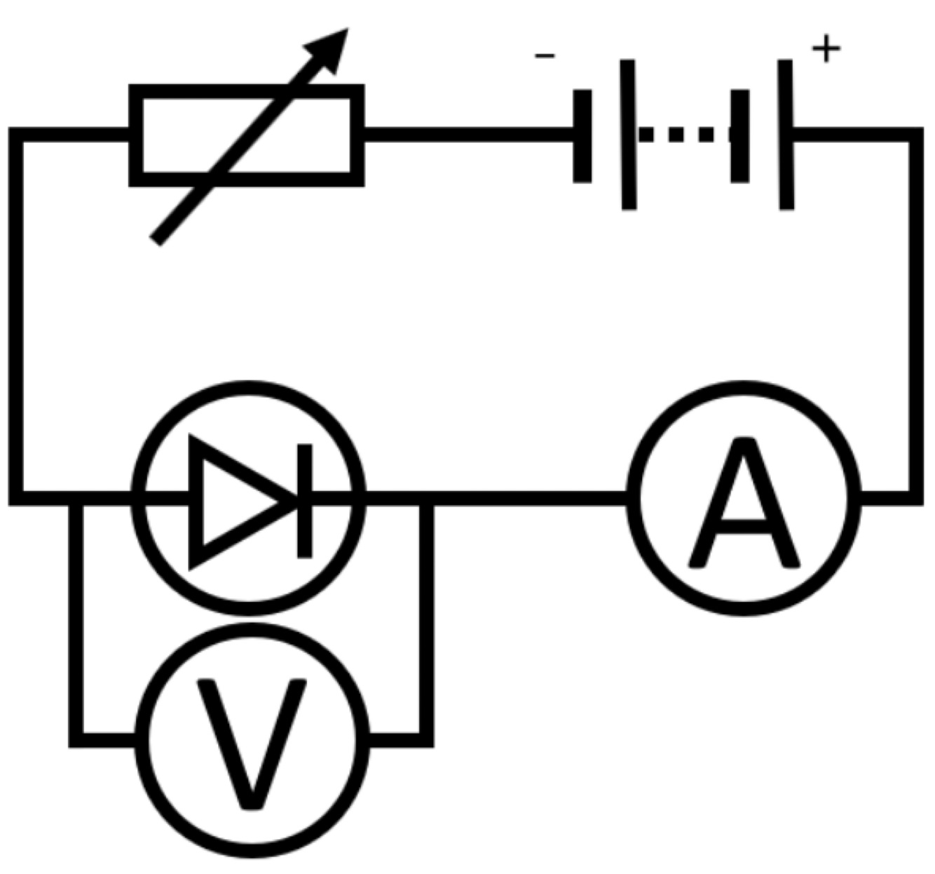 Circuit diagram to find I-V characteristics of a diode:
