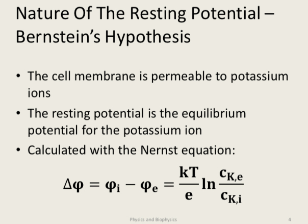 Nature of the resting potential- Bernsteins hypothesis