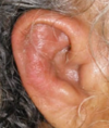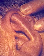 Artropatia gotosa crónica ( tofo en hélix pavellón auricular )