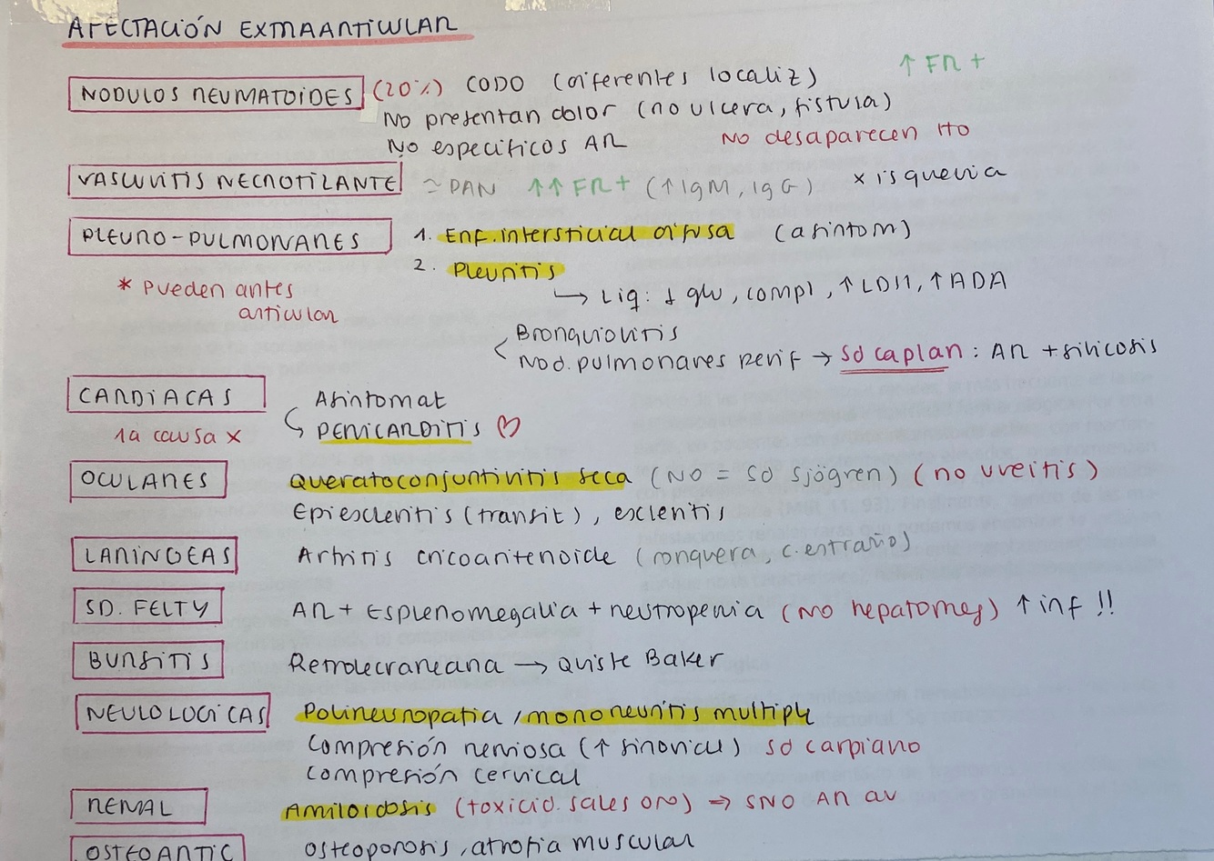 Afectación extraarticular AR