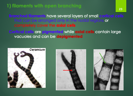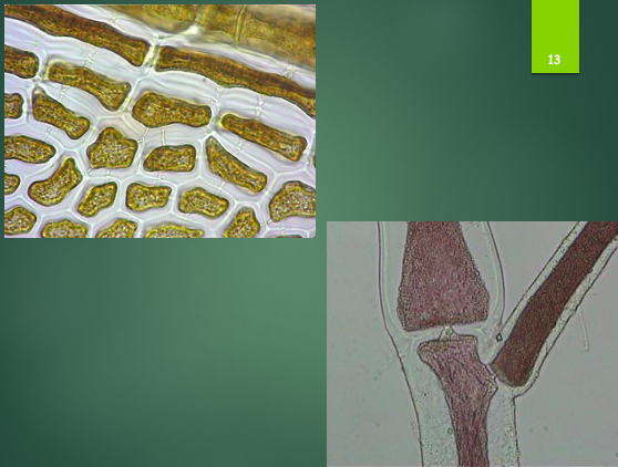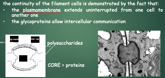 - prim. pit connections: black parts between cells übereinander (connections of cells of SAME filaments)