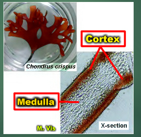 - the outer part is called cortex, while the innermost part of the thallus is called medulla