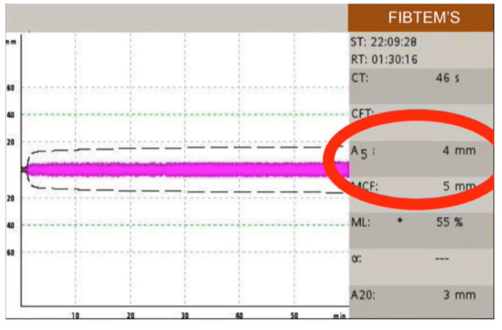 A pt has a Extem A5 < 35mm and a fibtem CT > 600s. This is an early indicated of need for what?