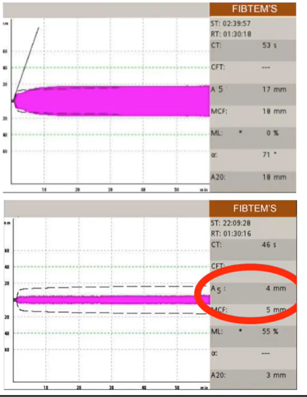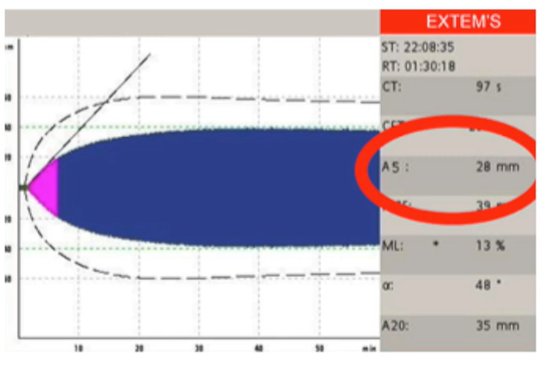 > 15% breakdown = hyperfibrinolysis = need for Txa