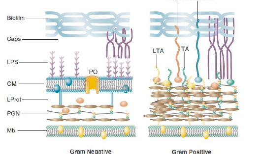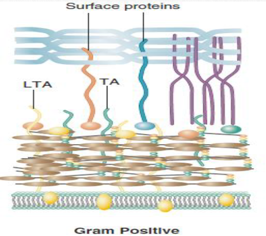Plus de 10 couches chez Gram positifs vs 2 chez Gram négatifs (rigidité)