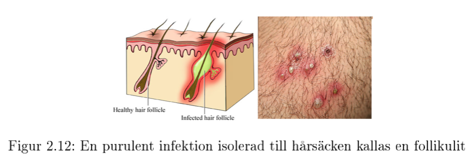 En follikulit är en in ammation av hårsäcken, när en hårsäck är infekterad bildas det var i hårsäcken och blir inflammerad men är oftast begränsad till hårsäcken.