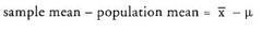 The difference between a sample statistic (mean, variance, s-dev) and its corresponding population parameter.