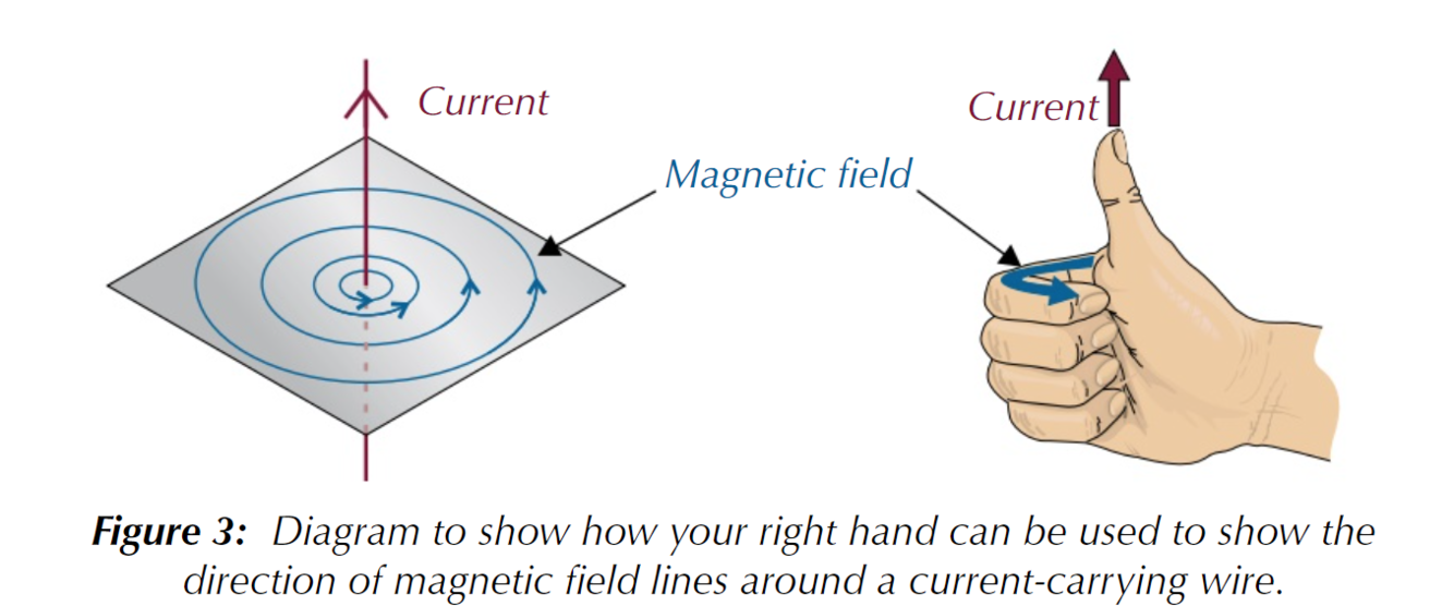 What rule is used to work out the direction of the magnetic field around a current-carrying wire and how does it work?