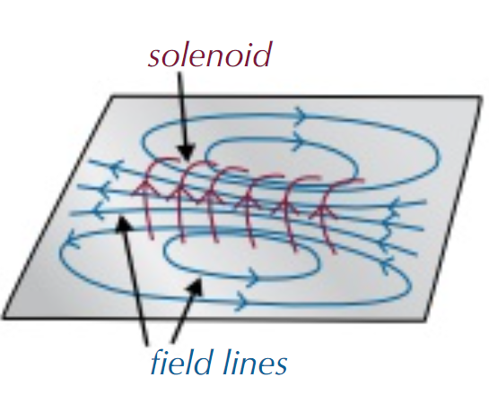 What happens to the shape of the magnetic field around a current-carrying wire when it is looped into a solenoid?
