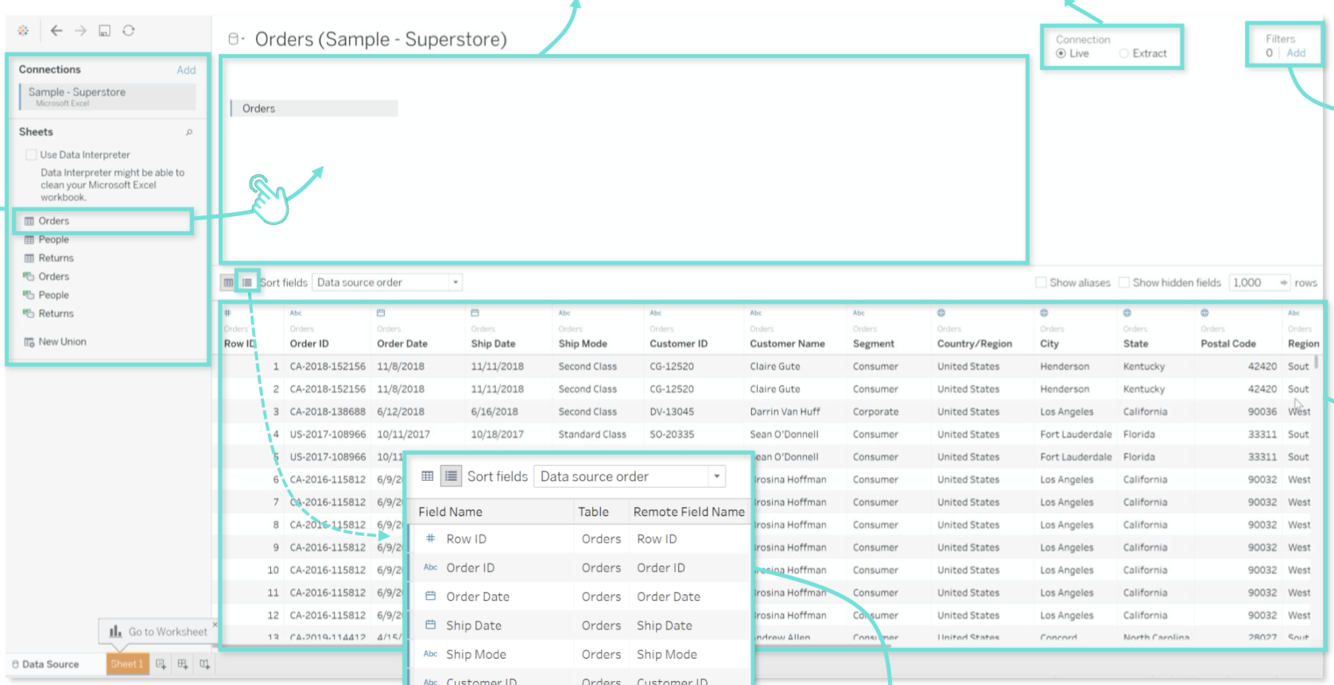 WHat’s the difference between (a) relationships, (b) joins, ( c) blending