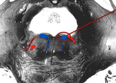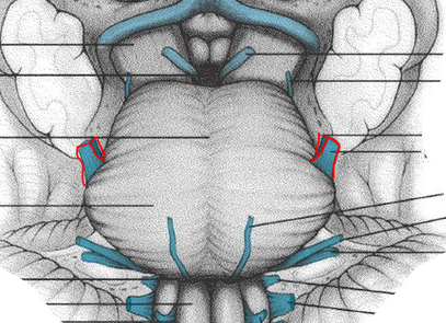 landmarks on the dorsal surface of the pons (floor of the 4th ventricle)
