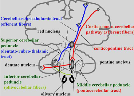 primarily the pontine nuclei, which receive input from the cerebral cortex