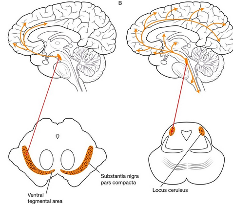 The raphe nuclei of the pons (serotonergic) project rostrally throughout the forebrain and modulate responses of___ and ___