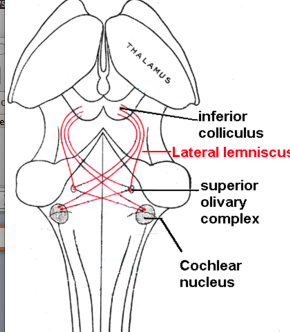 auditory axons from the cochlear nuclei, no matter if they cross or not, synapse in the