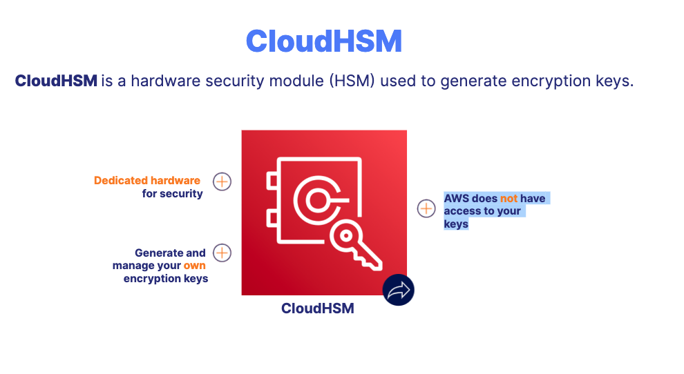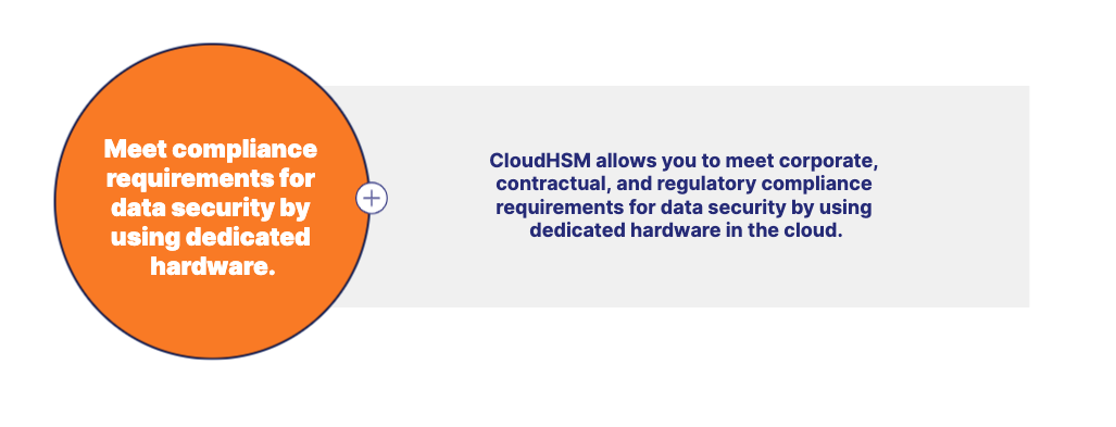 Amazon CloudHSM allows you to meet corporate, contractual, and regulatory compliance requirements for data security by using dedicated hardware in the cloud.