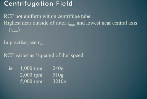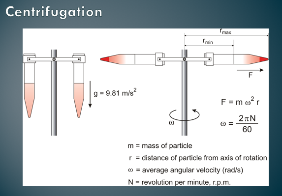 •The ‘g-force’ of a centrifuge is calculated from the following formula: