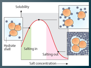 •Proteins are usually least soluble around their isoelectricpoints (electrically neutral)