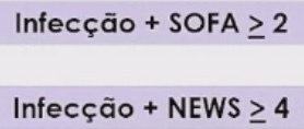 1. FR ≥ 22 2. Alteração nível de consciência 3. PAs ≤ 100