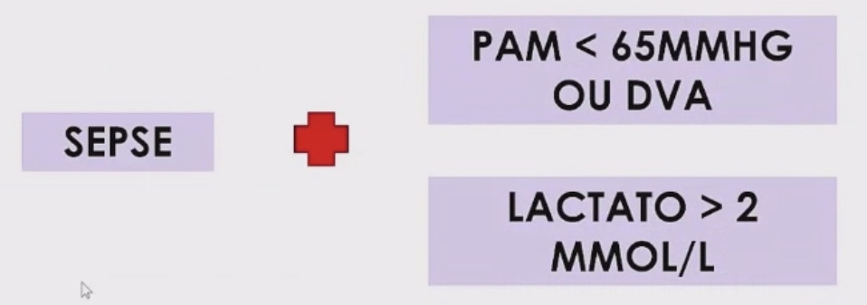 Necessidade de vasopressor para manter PAM > 65 + lactato > 2mmol/L (18mg/dL)