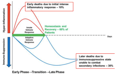 Esse excesso, se não houver regulação do sistema imunológico, conduz a uma tempestade de citocinas = inflamação exuberante = sepse.