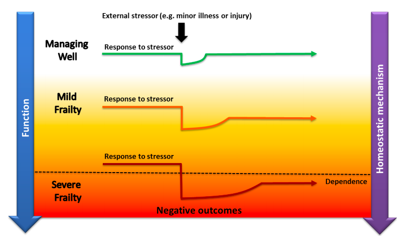 Frailty is most often defined as a syndrome of physiological decline in late life, characterized by marked vulnerability to adverse health outcomes.