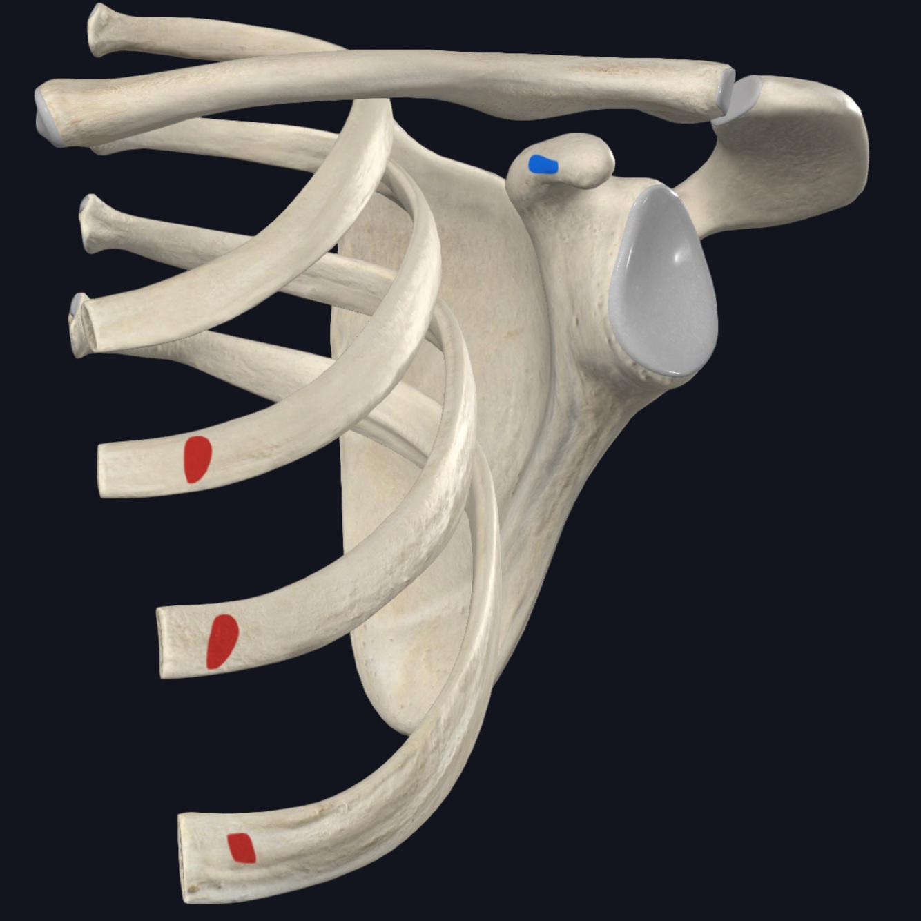 O – external surface of lateral parts of ribs 1-8