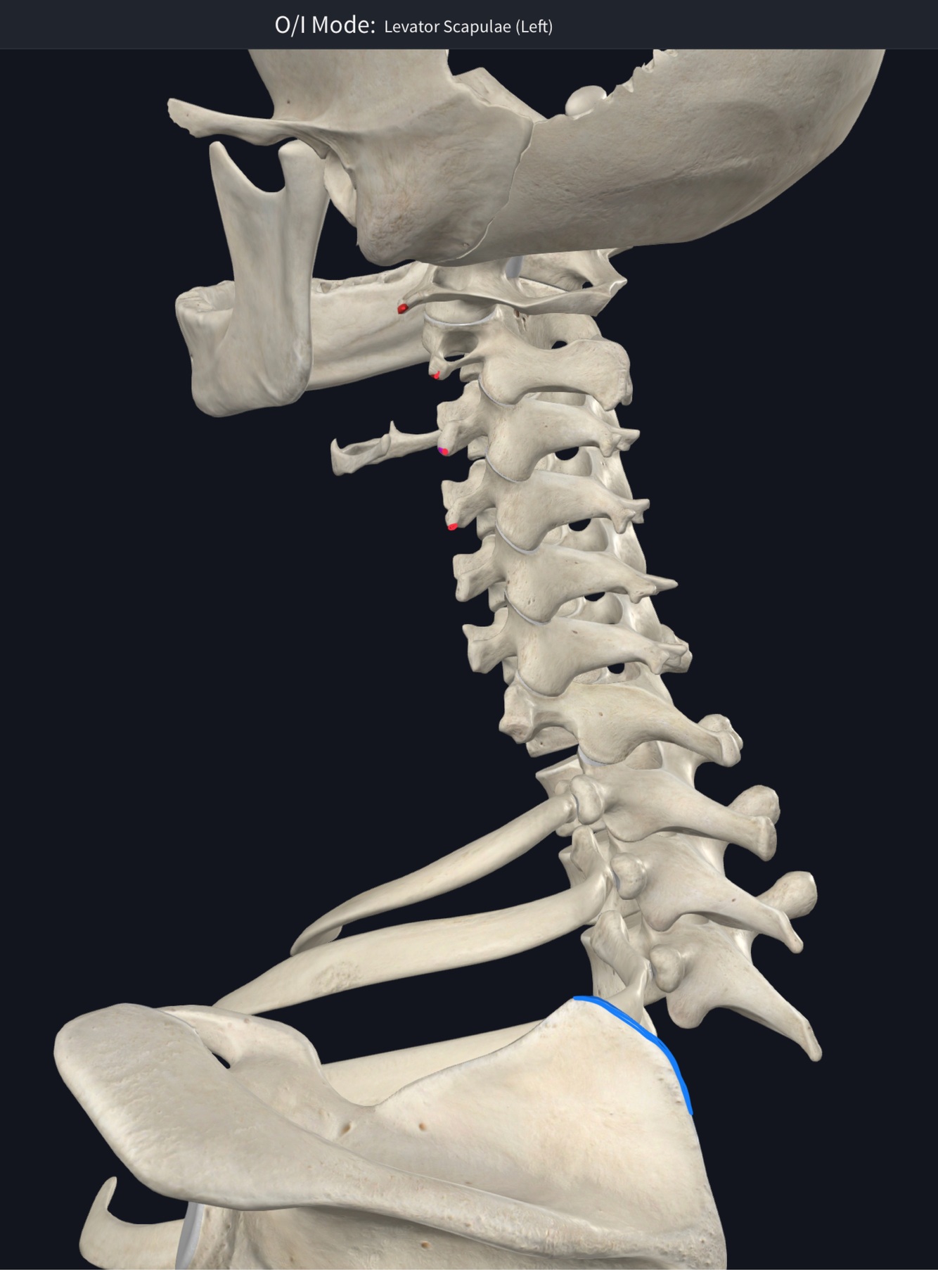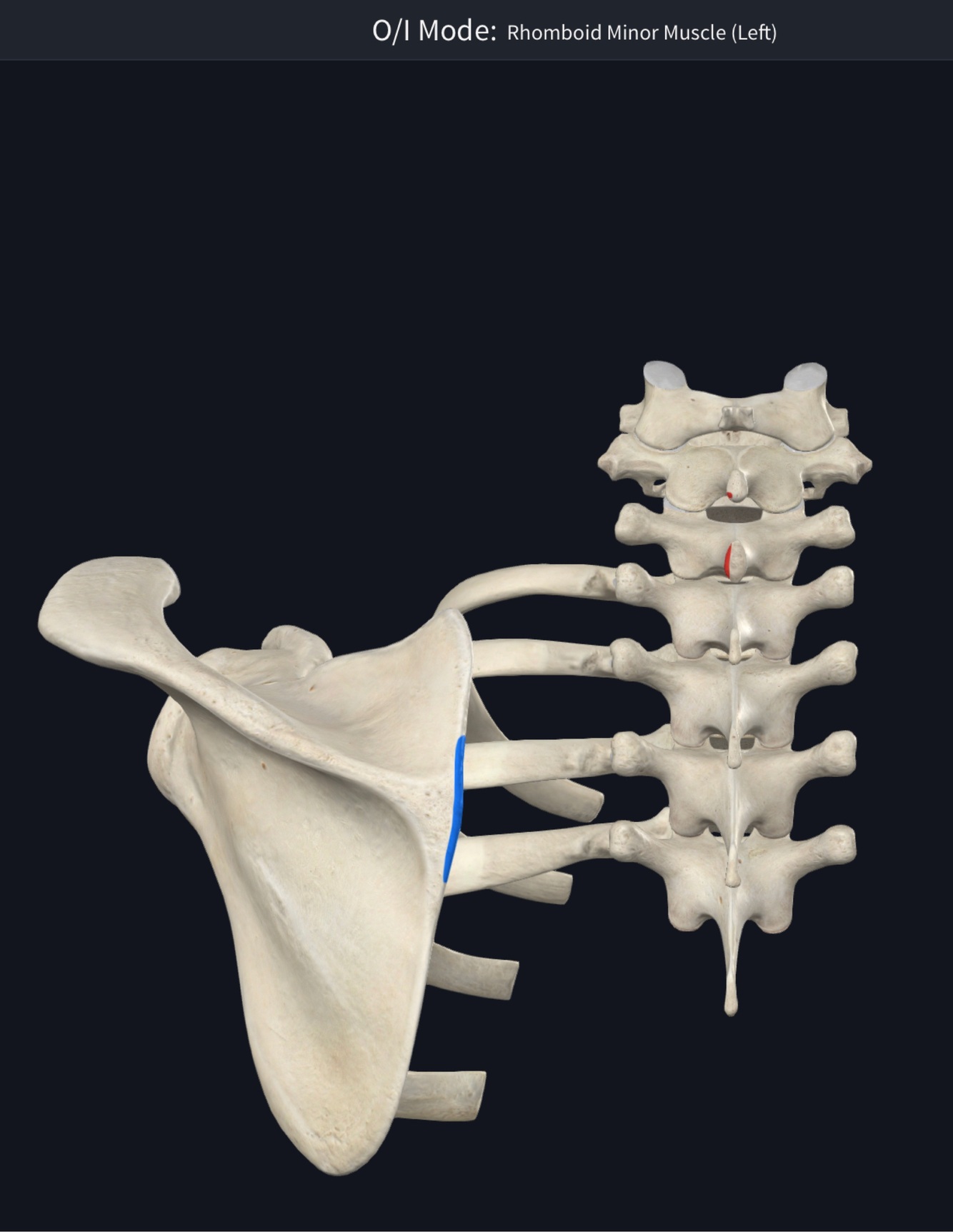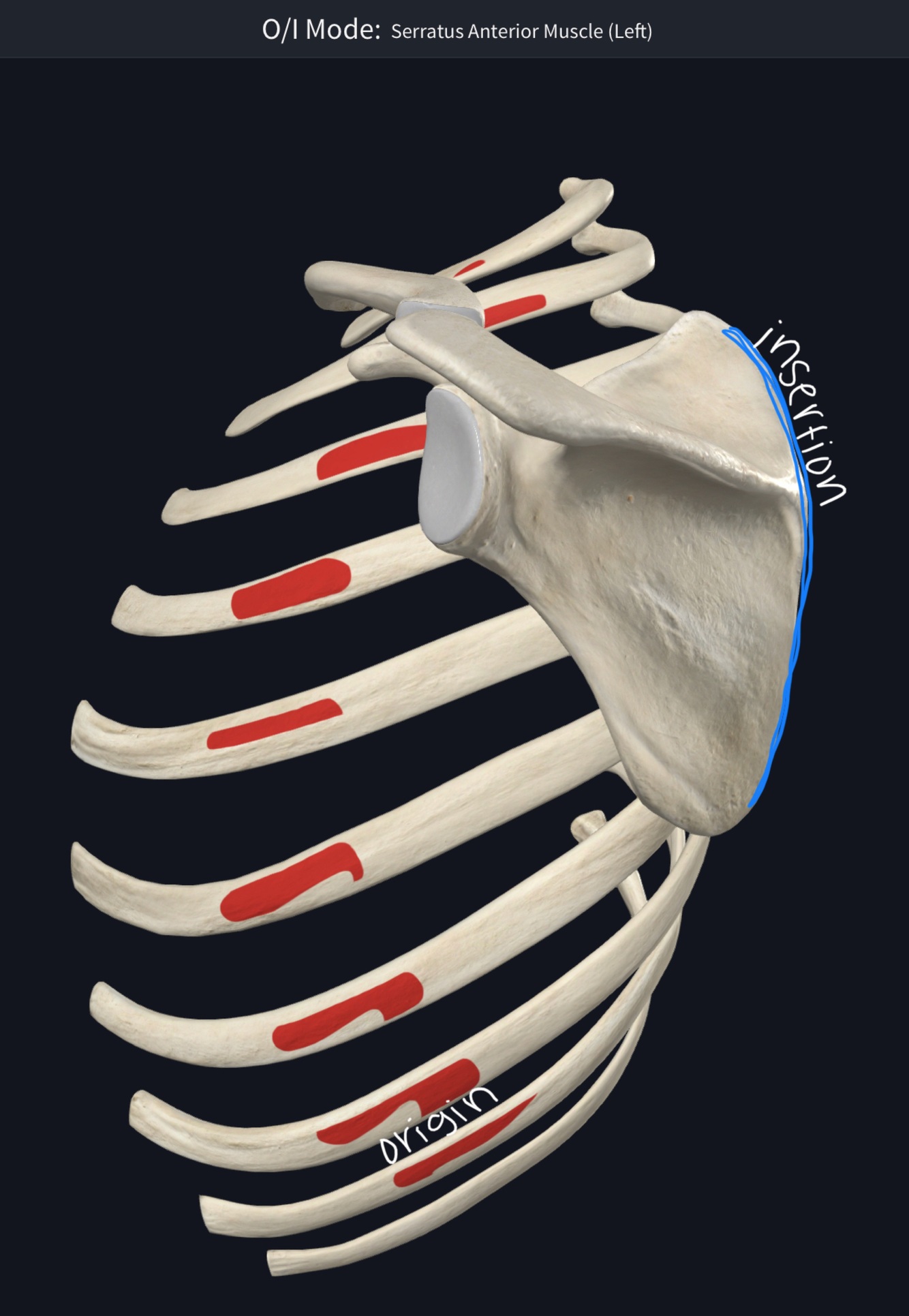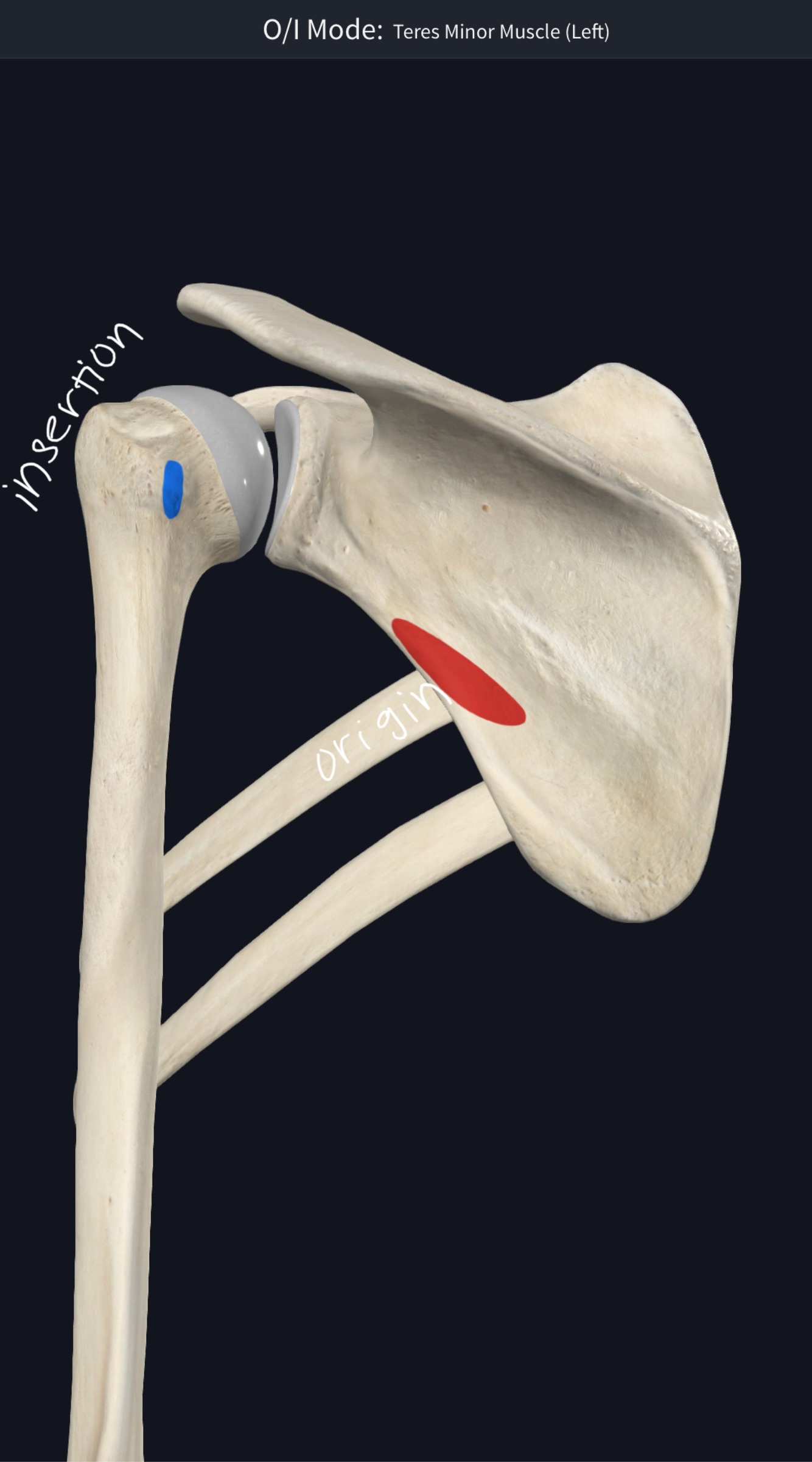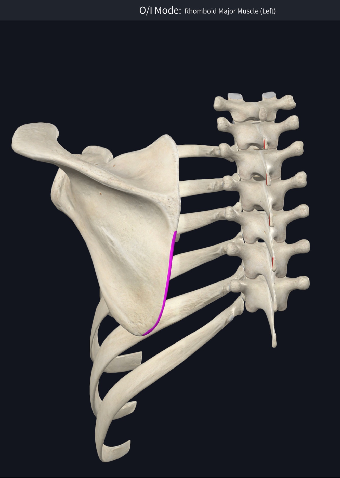 O – middle 1/2 of lateral border of scapula