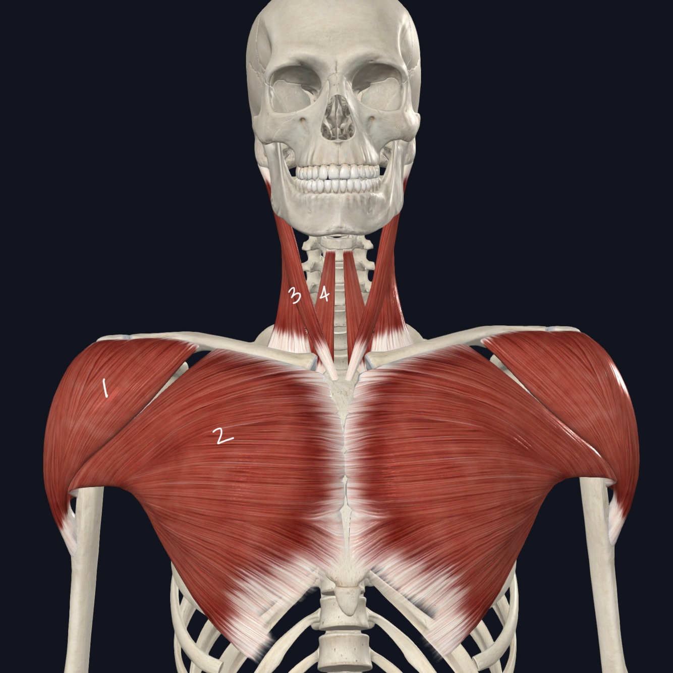 Identify the 4 mm that **originate from the clavicle **