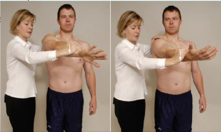pronated. Resist the supination of forearm and external rotation of shoulder