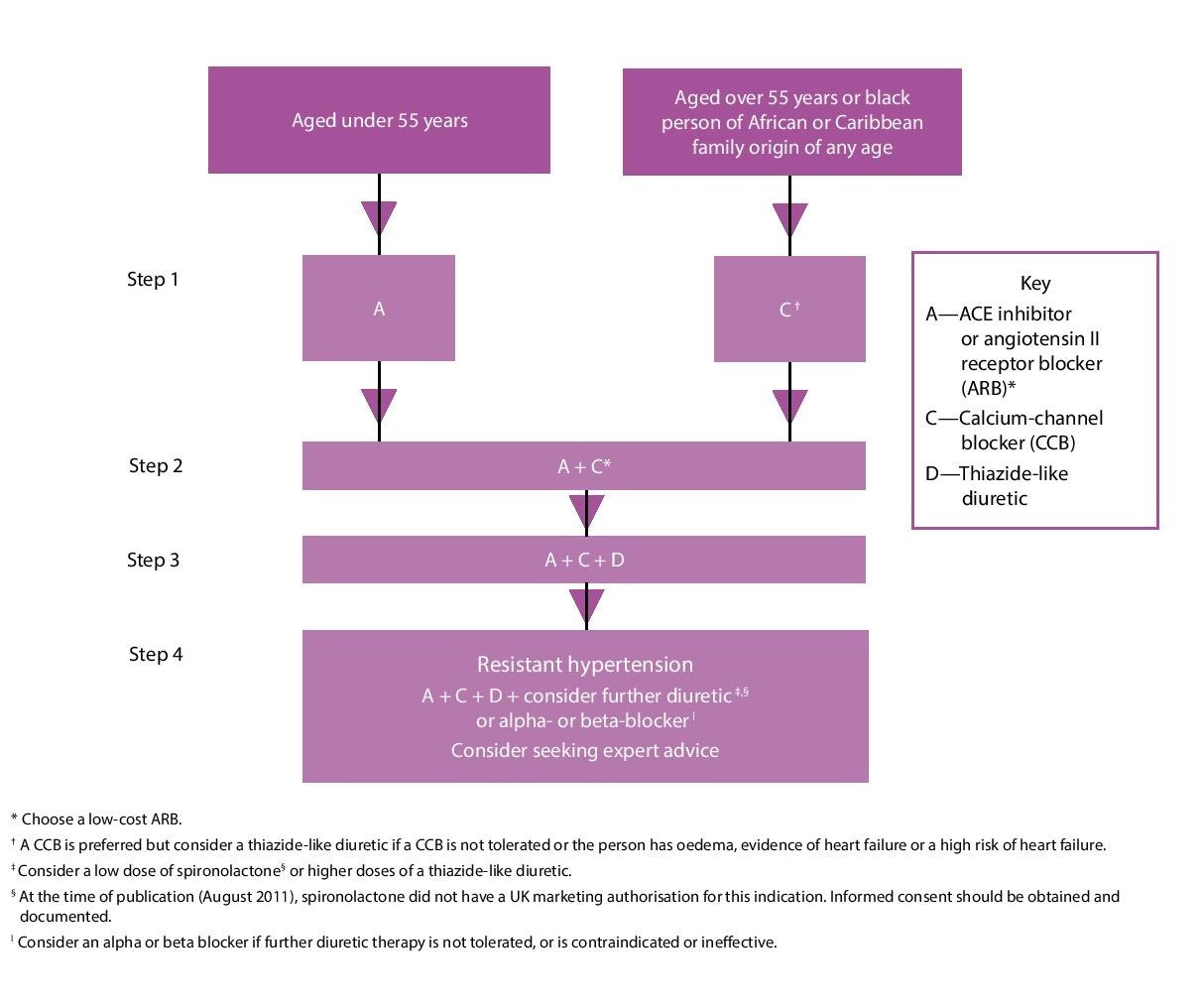 1st line treatment for hypertension according to NICE guidelines