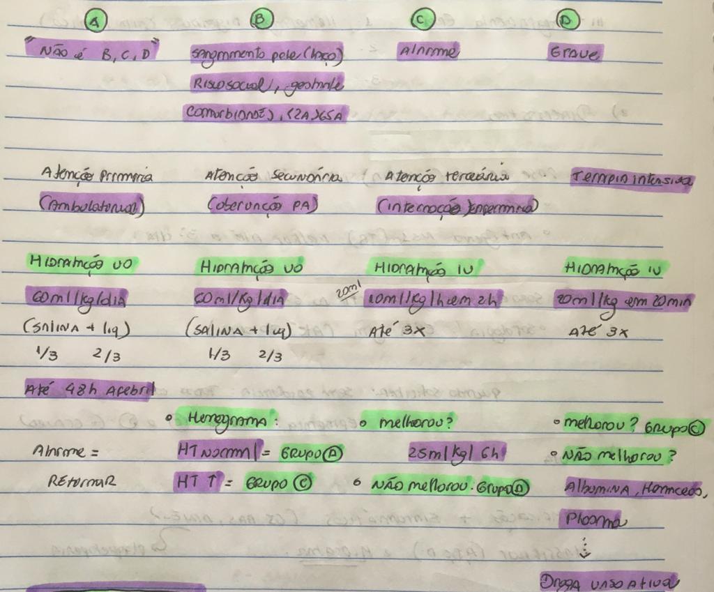Internar enfermaria, hidratar EV 20ml/kg/2h (até 3x)… melhorou 25/ml/kg/6h… Não melhorou: grupo D…