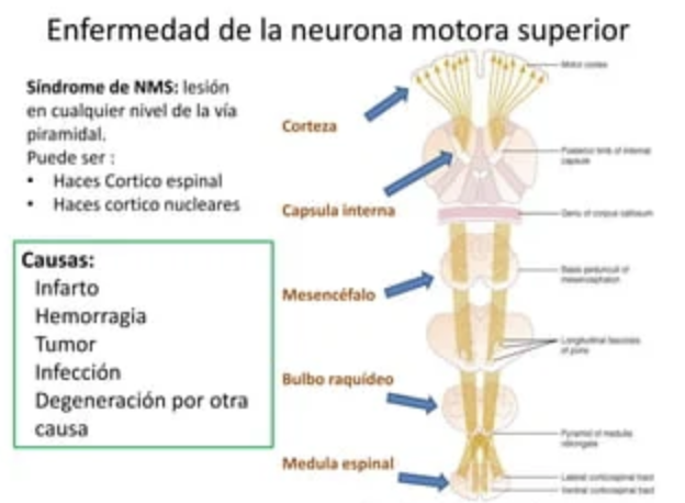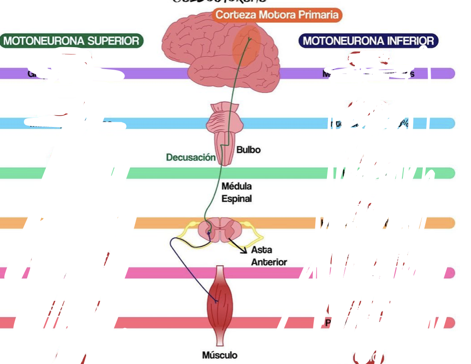Por que la afección motriz generalmente afecta o se manifiesta con sx de neurona motora superior A MENOS que haya afección en astas anteriores (donde se encuentra el cuerpo de la neurona motora inferior)