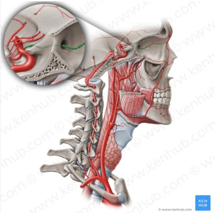 Arteria vertebral y sus ramas (pequeñas) llamado territorio vertebrobasilar