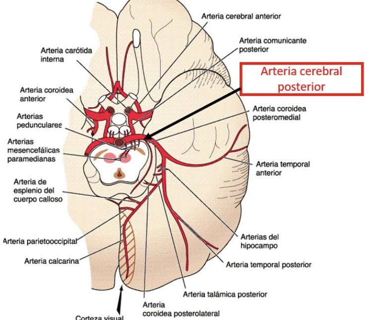 Síntoma principal en afección de la arteria cerebral posterior (ACP):