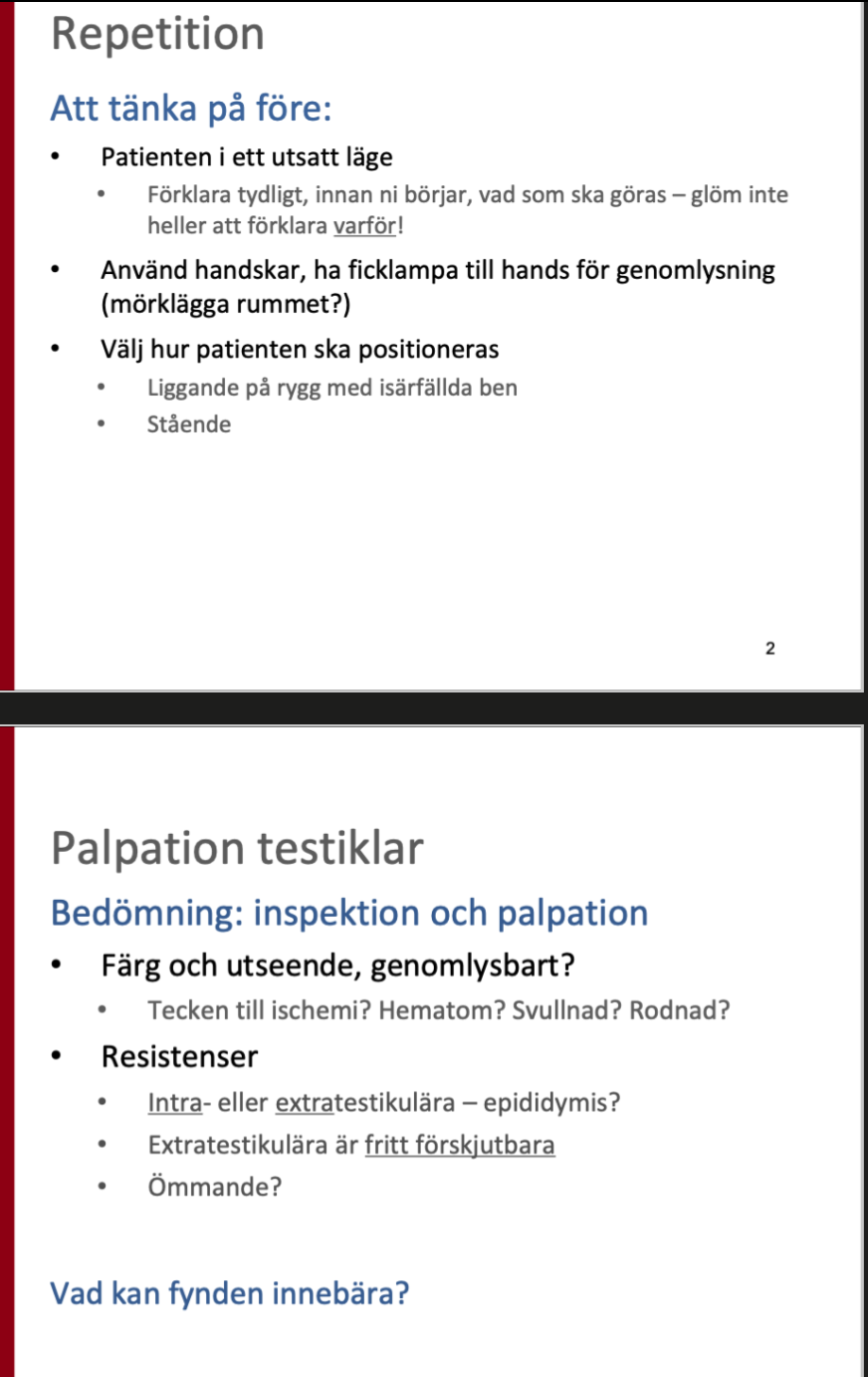 Vid undersökning av skrotum.