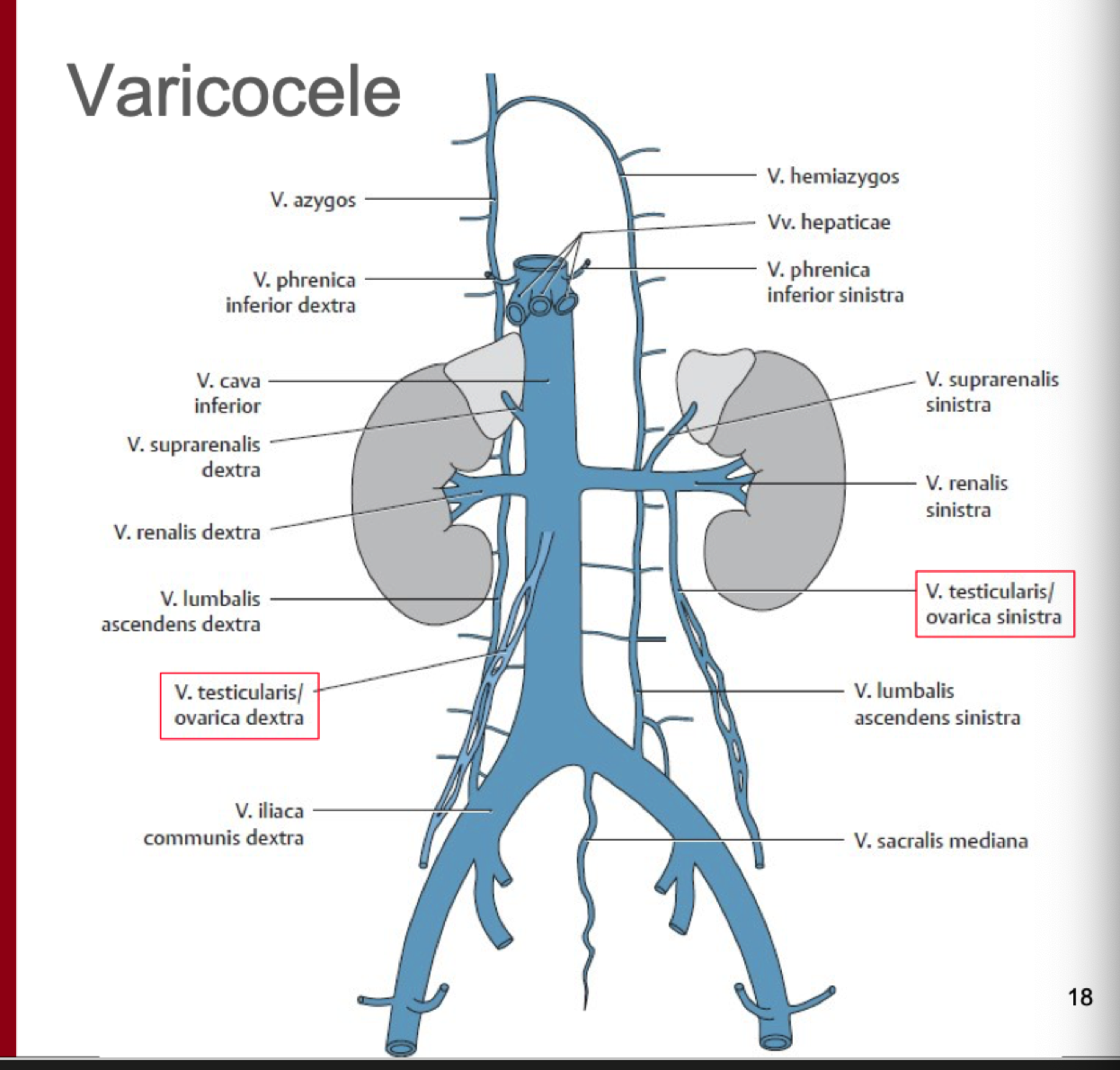 Pga den skarpa vinkeln mellan v. renalis sin och testicularis är risken större.