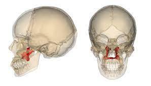 Label the 6 pairs + 2 unpaired bones of the viscerocranium (facial bones) on the diagram.